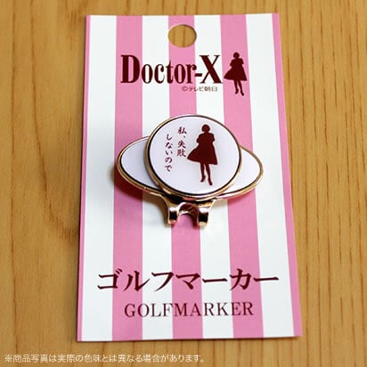 テレビ朝日・米倉涼子主演の高視聴率ドラマ「ドクターX」(2016年第4弾)オリジナルグッズ。台座にタイトルロゴ、マーカーに大門美知子シルエット&「私失敗しないので」のおなじみのセリフが印刷されたゴルフマーカー。 ■台紙:55×100mm ■メタル素材+シルク印刷 ■中国製